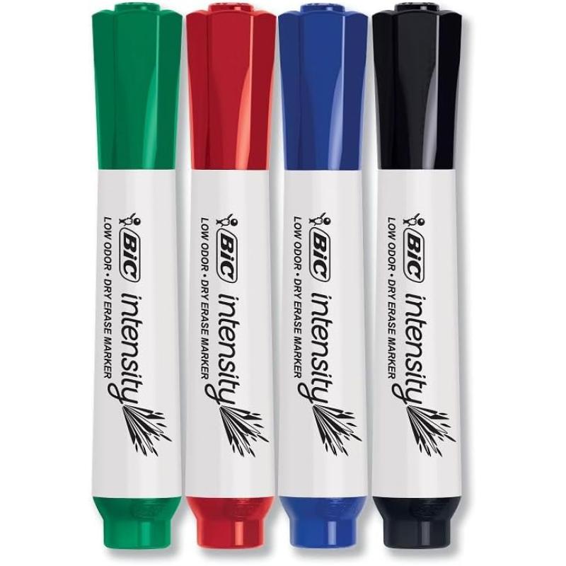 BIC Intensity Low Odor Dry Erase Markers, Assorted Colors, Chisel Tip, 4-Count Pack of Erasable Markers With Low-Odor Ink for a Pleasant Writing Experience(Assorted)