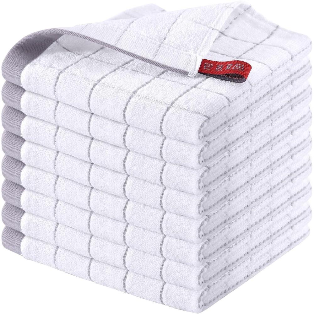 Homaxy 100% Cotton Terry Kitchen Towels(Black, 13 x 28 inches), Checkered Designed, Soft and Super Absorbent Dish Towels, 4 Pack(White)