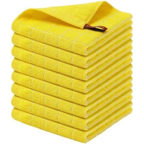 Homaxy 100% Cotton Terry Kitchen Towels(Black, 13 x 28 inches), Checkered Designed, Soft and Super Absorbent Dish Towels, 4 Pack(Yellow)