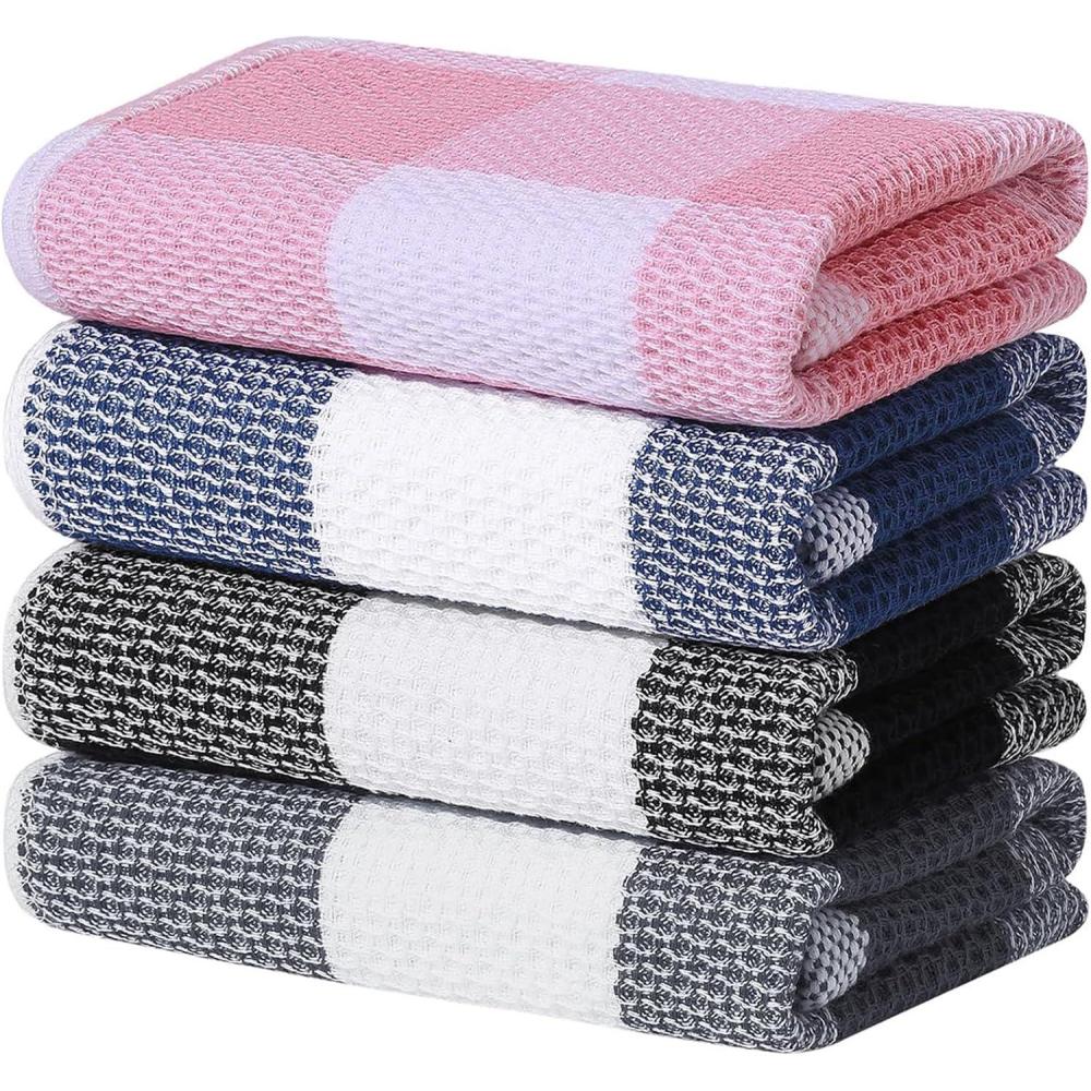 Homaxy 100% Cotton Waffle Weave Check Plaid Dish Cloths, 12 x 12 Inches, Super Soft and Absorbent Dish Towels Quick Drying Dish Rags, 6-Pack, White & Black(Multicolor)