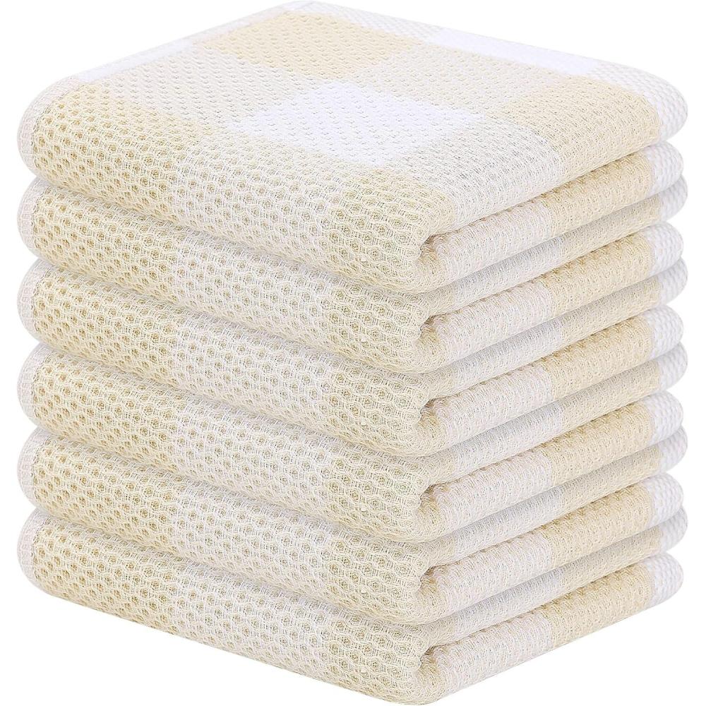 Homaxy 100% Cotton Waffle Weave Check Plaid Dish Cloths, 12 x 12 Inches, Super Soft and Absorbent Dish Towels Quick Drying Dish Rags, 6-Pack, White & Black(White & Beige)