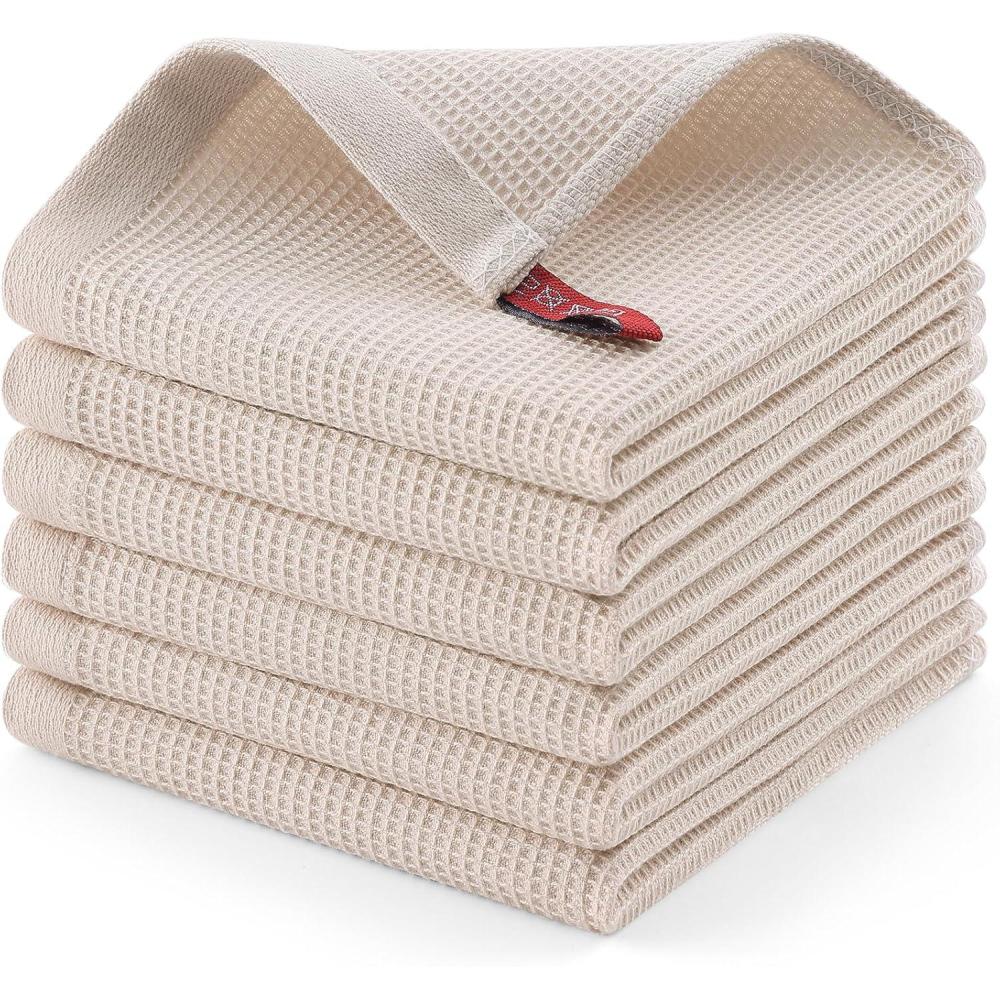 Homaxy 100% Cotton Waffle Weave Dish Cloths – 6 Pack Soft and Absorbent Dish Towels – 12 x 12 Inches Quick Dry Dish Rags – White(Begie)