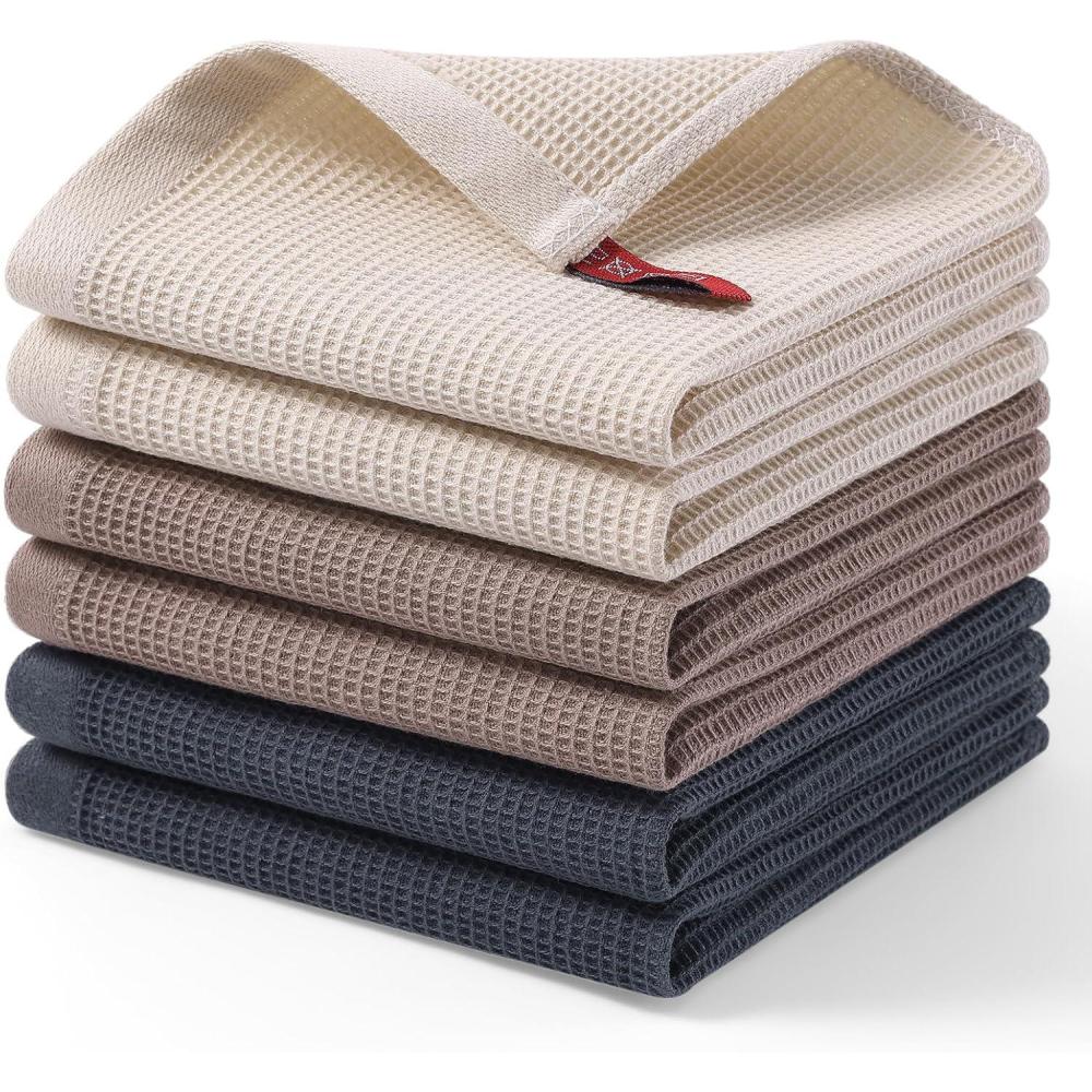 Homaxy 100% Cotton Waffle Weave Dish Cloths – 6 Pack Soft and Absorbent Dish Towels – 12 x 12 Inches Quick Dry Dish Rags – White(Beige/Dark Grey/Brown)