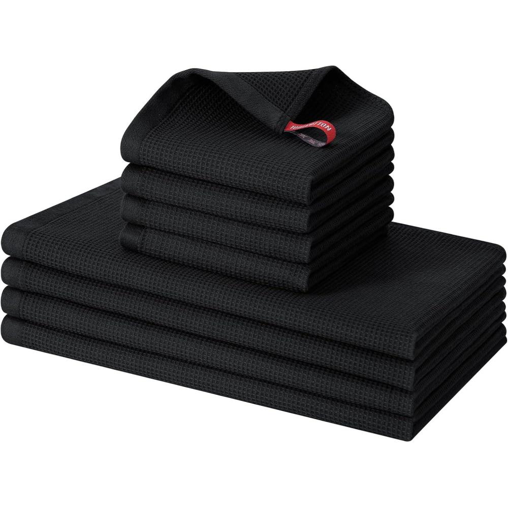 Homaxy 100% Cotton Waffle Weave Dish Cloths – 6 Pack Soft and Absorbent Dish Towels – 12 x 12 Inches Quick Dry Dish Rags – White(Black)