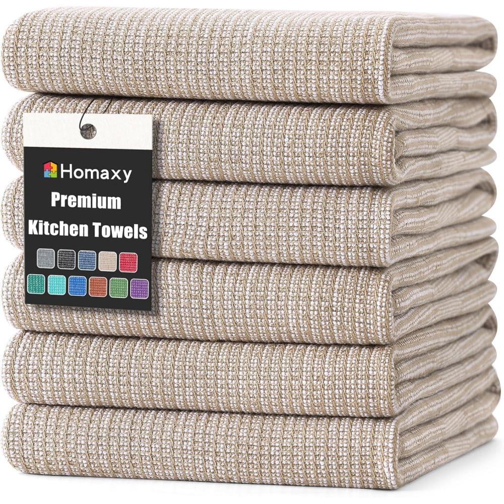 Homaxy Premium Kitchen Towels(18”x 28”, 6 Pack), Large Cotton Kitchen Hand Towels, Flat and Terry Dish Towels, 380 GSM Highly Absorbent Tea Towel Set with Hanging Loop, Red(Khaki)