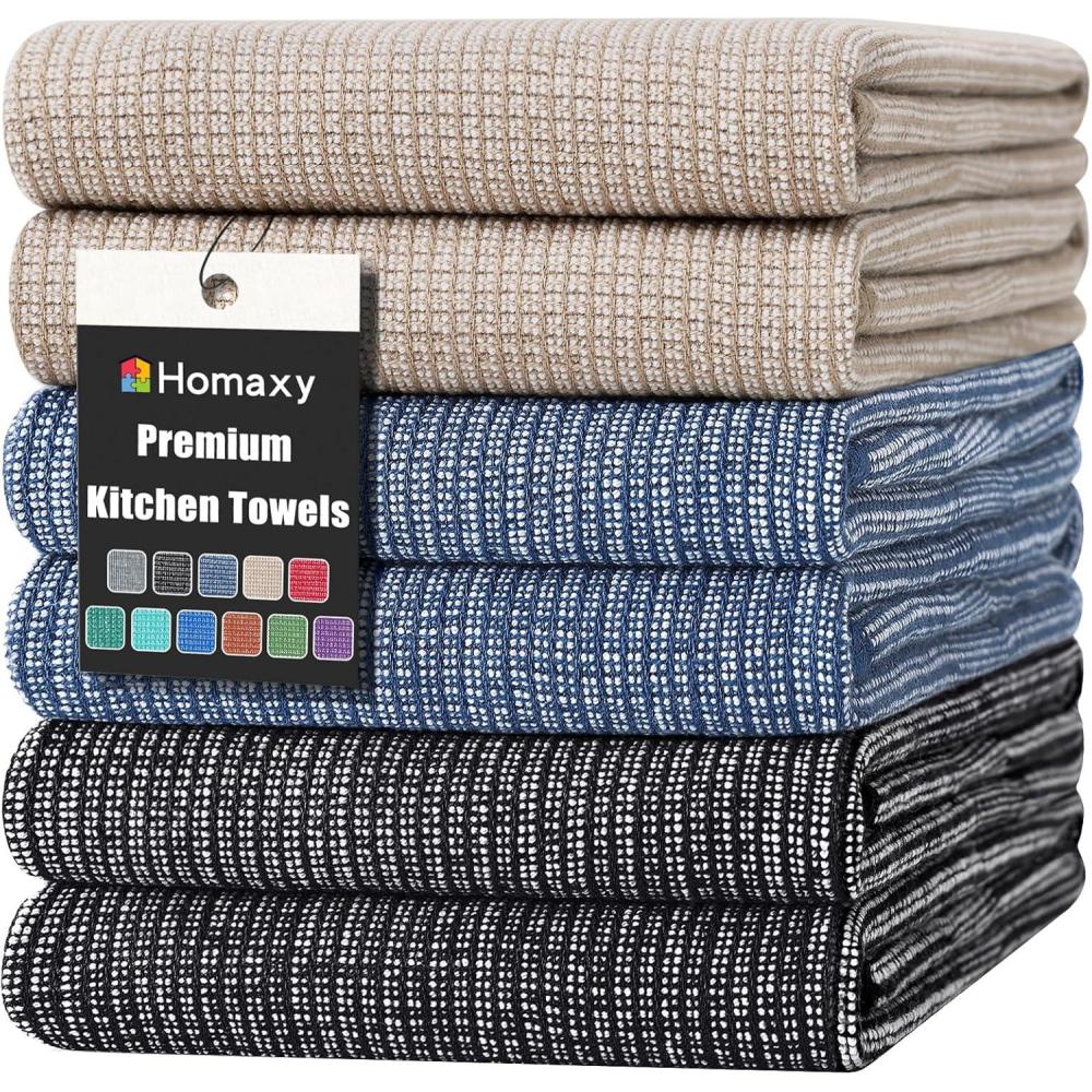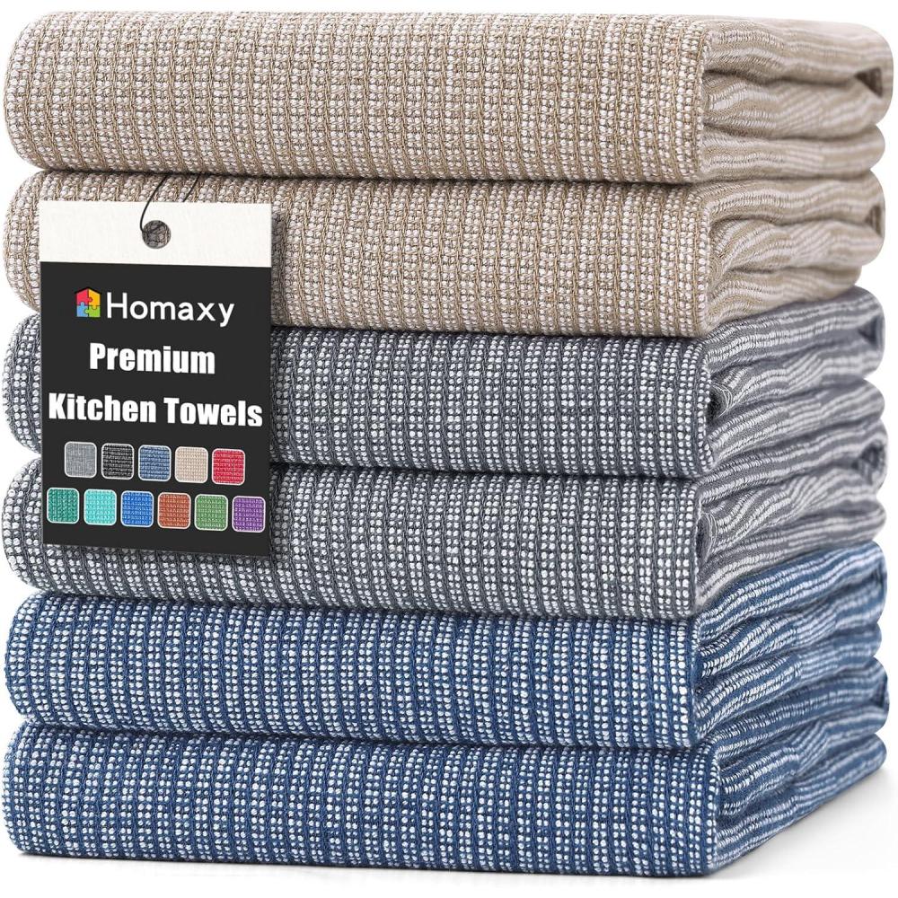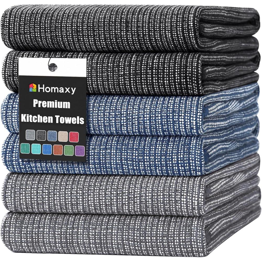 Homaxy Premium Kitchen Towels(18”x 28”, 6 Pack), Large Cotton Kitchen Hand Towels, Flat and Terry Dish Towels, 380 GSM Highly Absorbent Tea Towel Set with Hanging Loop, Red(Navy Blue/Grey/Black)