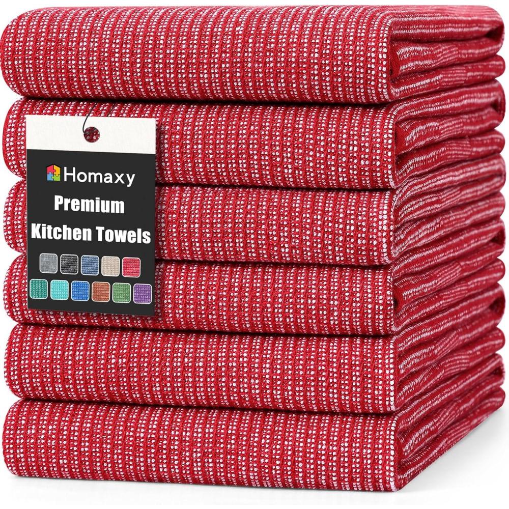 Homaxy Premium Kitchen Towels(18”x 28”, 6 Pack), Large Cotton Kitchen Hand Towels, Flat and Terry Dish Towels, 380 GSM Highly Absorbent Tea Towel Set with Hanging Loop, Red(Mixed Color)