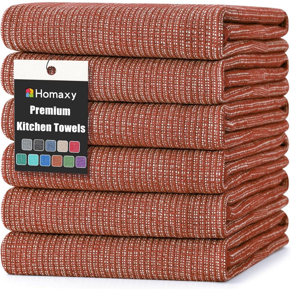 Homaxy Premium Kitchen Towels(18”x 28”, 6 Pack), Large Cotton Kitchen Hand Towels, Flat and Terry Dish Towels, 380 GSM Highly Absorbent Tea Towel Set with Hanging Loop, Red(Rust)