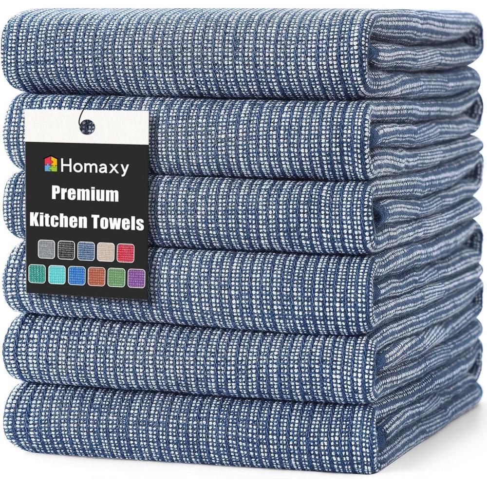 Homaxy Premium Kitchen Towels(18”x 28”, 6 Pack), Large Cotton Kitchen Hand Towels, Flat and Terry Dish Towels, 380 GSM Highly Absorbent Tea Towel Set with Hanging Loop, Red(Navy Blue)