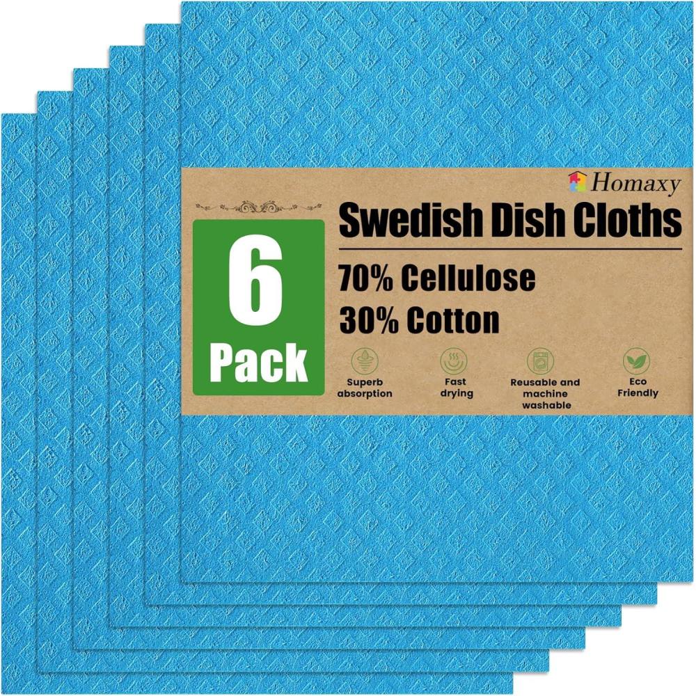 Homaxy Swedish Dishcloths for Kitchen, 10 Pack Reusable and Washable Cellulose Sponge Cloths Dish Towels, Absorbent and No Odor Paper Towels for Dishes & Counters, Multicolor(Blue)