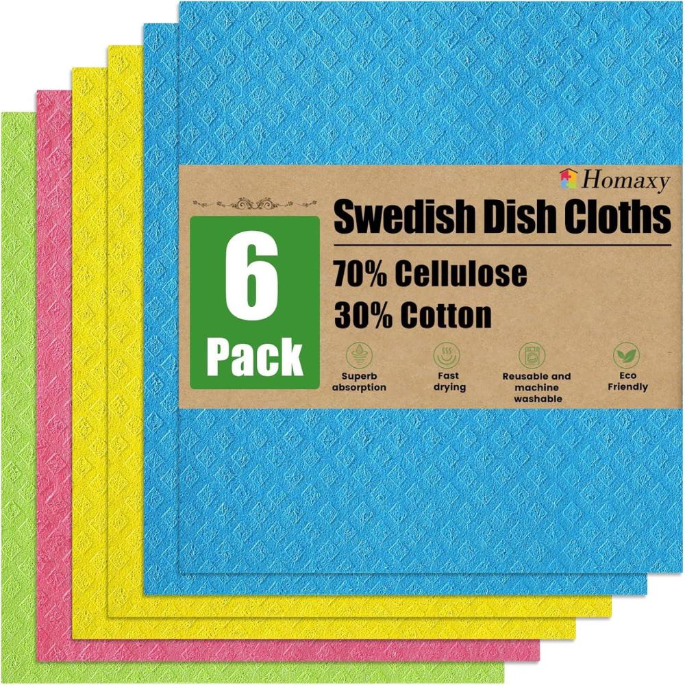 Homaxy Swedish Dishcloths for Kitchen, 10 Pack Reusable and Washable Cellulose Sponge Cloths Dish Towels, Absorbent and No Odor Paper Towels for Dishes & Counters, Multicolor(Multicolor)