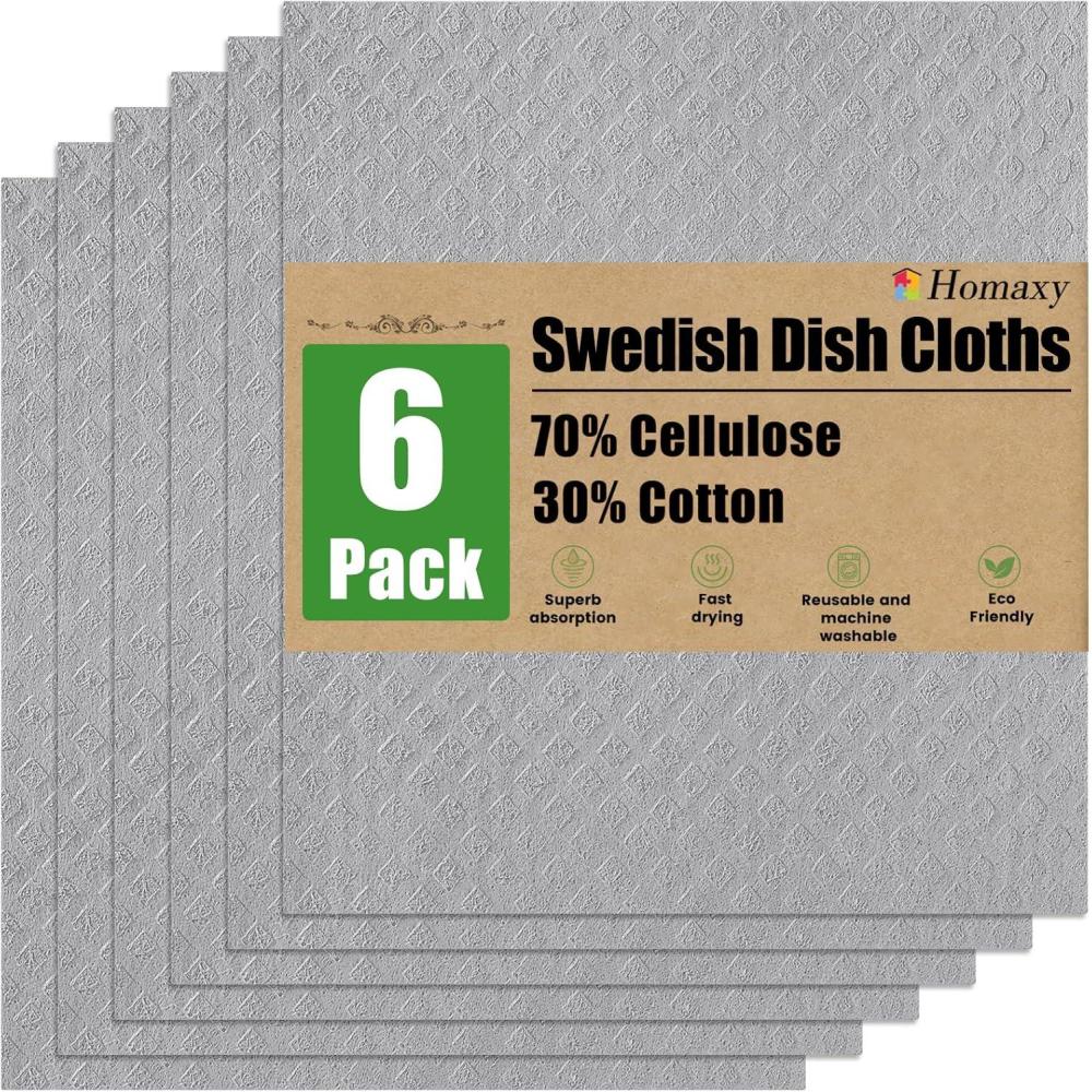 Homaxy Swedish Dishcloths for Kitchen, 10 Pack Reusable and Washable Cellulose Sponge Cloths Dish Towels, Absorbent and No Odor Paper Towels for Dishes & Counters, Multicolor(Grey)