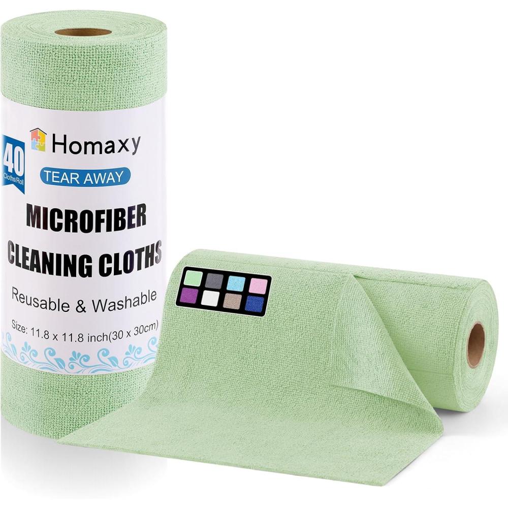 Homaxy Tear Away Dish Cloths Rolls, 75 Sheets-11.8″ X 11.8″, Reusable Washable Dish Towels for Kitchen, Ultra Absorbent and Quick Drying Microfiber Cleaning Rags, Pink(Green)