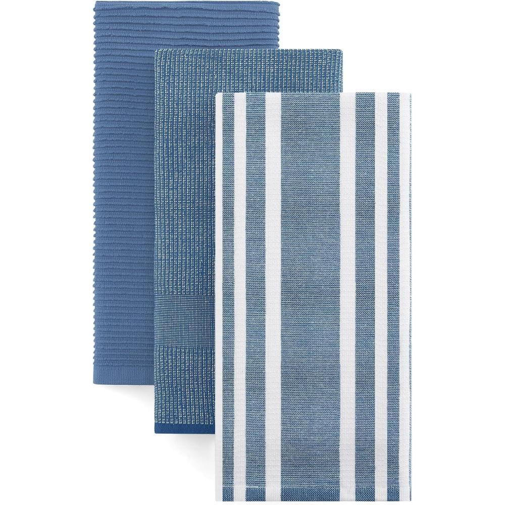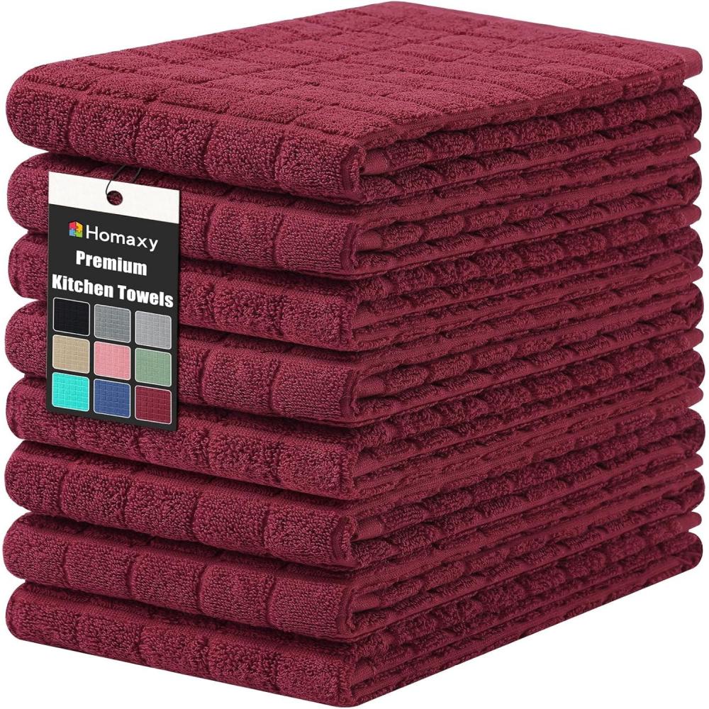 Homaxy Premium Cotton Kitchen Towels 16″x 28″, Large Natural Ring Spun 390 GSM Dish Towels, Super Absorbent Terry Kitchen Hand Towels, Soft Tea Towels with Hanging Loop, Navy Blue Check Design, 6 Pack(Pure Red)