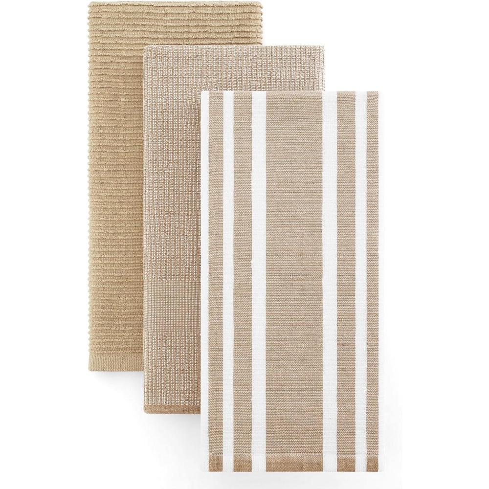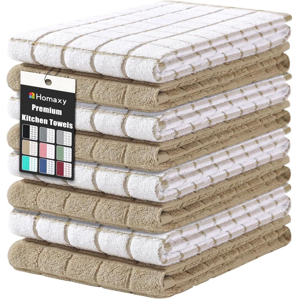 Homaxy Premium Kitchen Towels(18”x 28”, 6 Pack), Large Cotton 380 GSM Kitchen Hand Towels, Soft and Absorbent Terry Dish Towels, Multipurpose Tea Towel Set with Hanging Loop, Khaki(Khaki)