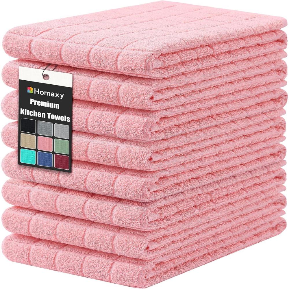 Homaxy Premium Cotton Kitchen Towels 16″x 28″, Large Natural Ring Spun 390 GSM Dish Towels, Super Absorbent Terry Kitchen Hand Towels, Soft Tea Towels with Hanging Loop, Navy Blue Check Design, 6 Pack(Pure Pink)