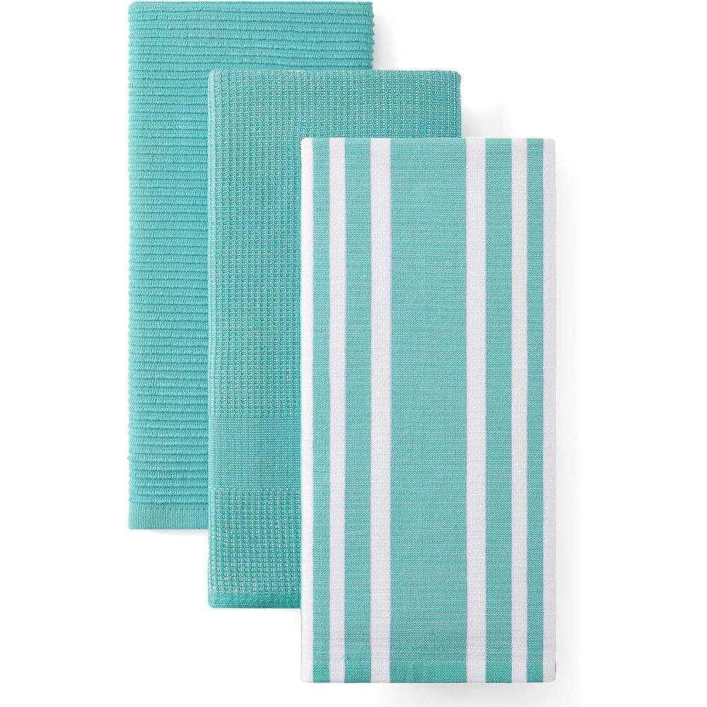 Homaxy Premium Kitchen Towels(18”x 28”, 6 Pack), Large Cotton 380 GSM Kitchen Hand Towels, Soft and Absorbent Terry Dish Towels, Multipurpose Tea Towel Set with Hanging Loop, Khaki(Teal)