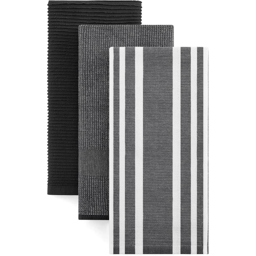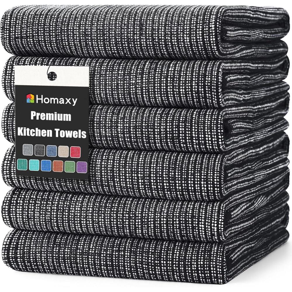 Homaxy Premium Kitchen Towels(18”x 28”, 6 Pack), Large Cotton 380 GSM Kitchen Hand Towels, Soft and Absorbent Terry Dish Towels, Multipurpose Tea Towel Set with Hanging Loop, Khaki(Black)