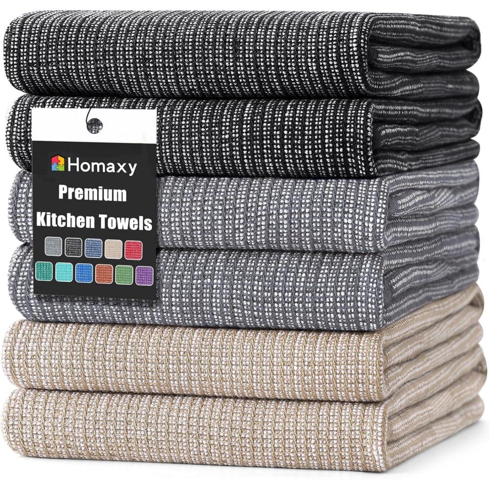 Homaxy Premium Kitchen Towels(18”x 28”, 6 Pack), Large Cotton 380 GSM Kitchen Hand Towels, Soft and Absorbent Terry Dish Towels, Multipurpose Tea Towel Set with Hanging Loop, Khaki(Grey)