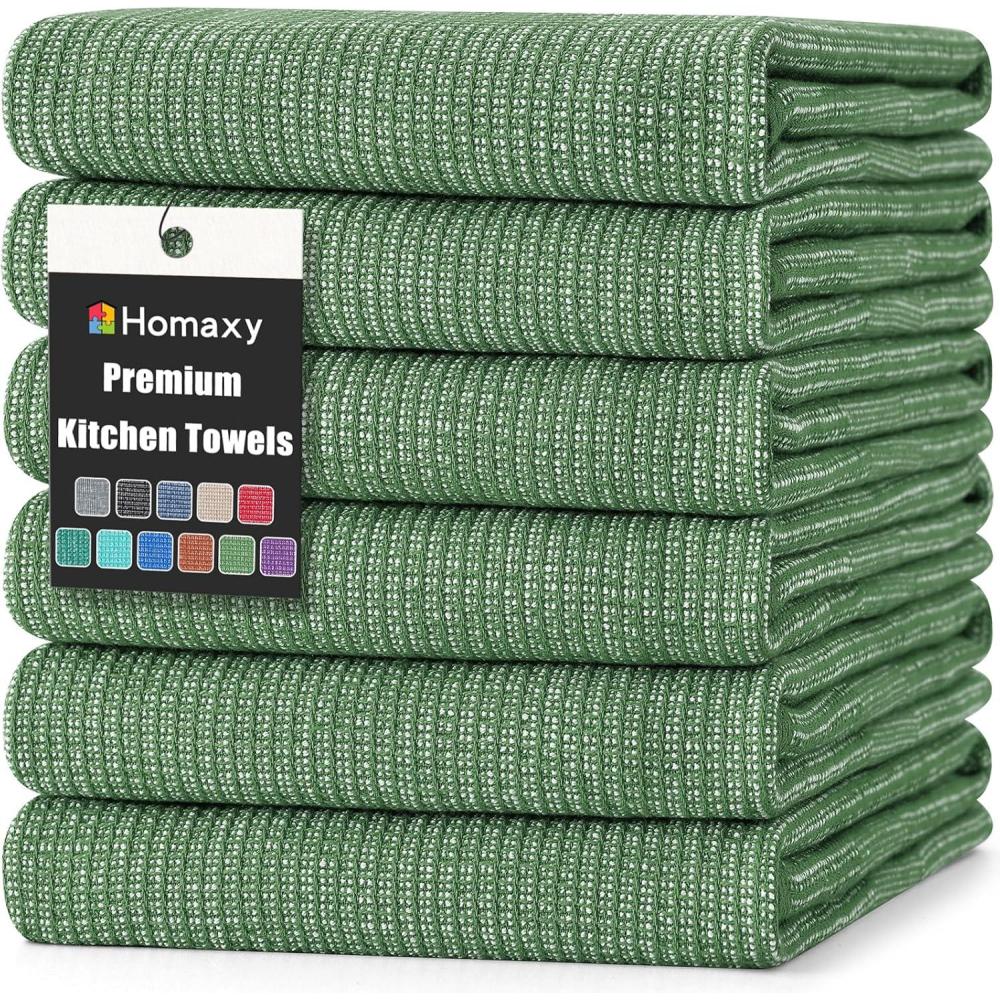Homaxy Premium Kitchen Towels(18”x 28”, 6 Pack), Large Cotton 380 GSM Kitchen Hand Towels, Soft and Absorbent Terry Dish Towels, Multipurpose Tea Towel Set with Hanging Loop, Khaki(Grass Green)