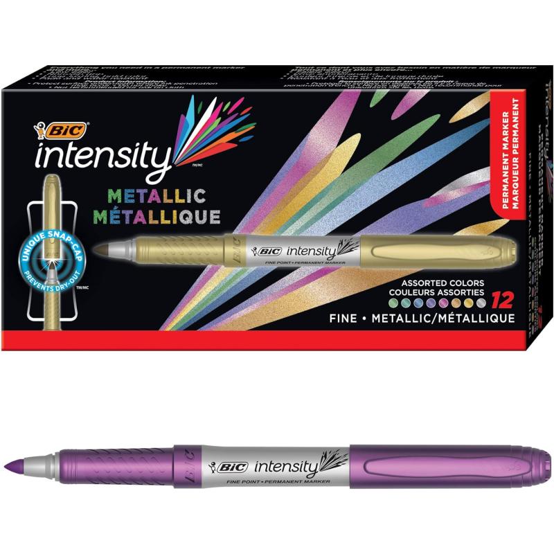 BIC Intensity Metallic Permanent Markers, Fine Point, 8-Count Pack of Metallic Markers (Assorted Colors May Vary) With Non-Slip Grip for Comfort and Control(1 Count (Pack of 12))